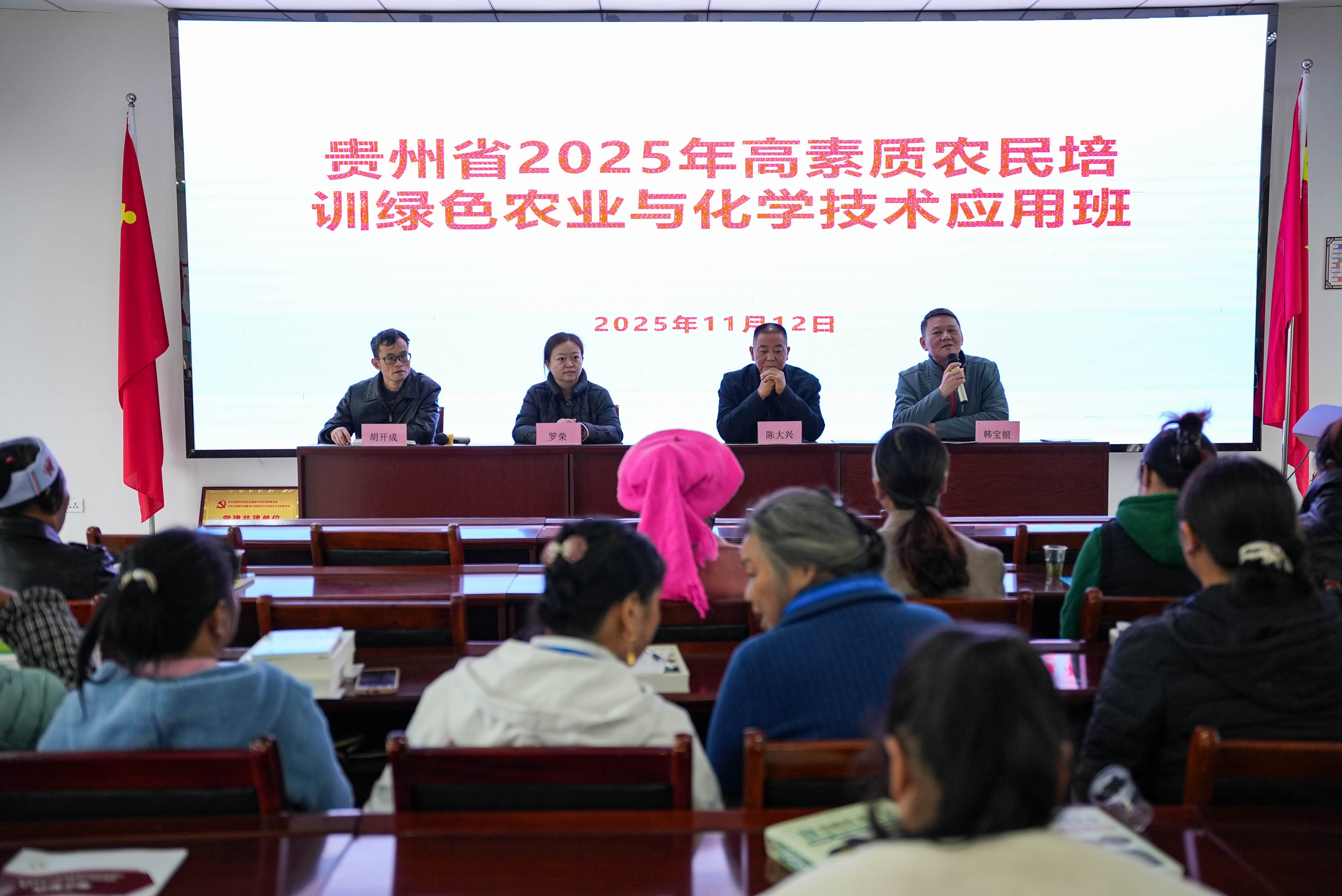 本网讯 11月16日,在贵州省农业农村厅指导下,由贵州师范学院化学与材料学院承办的“2025年高素质农民培育项目绿色农业与化学技术应用培训班”圆满结束。来自西秀区双堡镇及周边地区的50名种植大户、家庭农场主和农民专业合作社负责人,经过系统学习并通过实践考核,顺利获得结业证书,成为推动农业绿色高质量发展的新生力量。