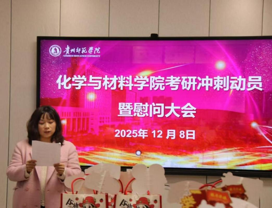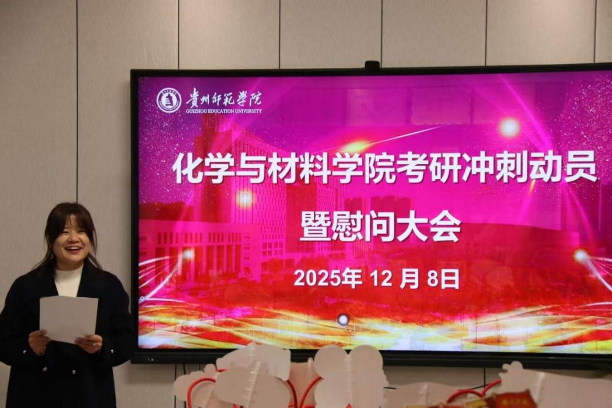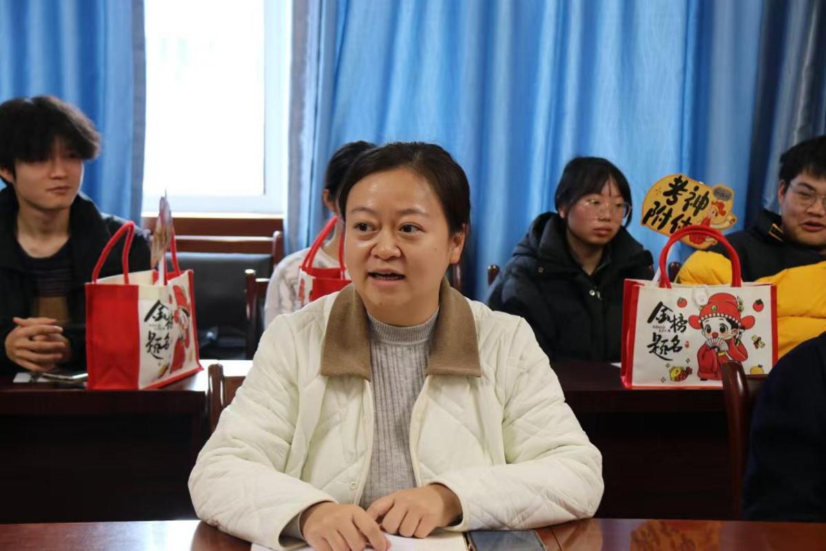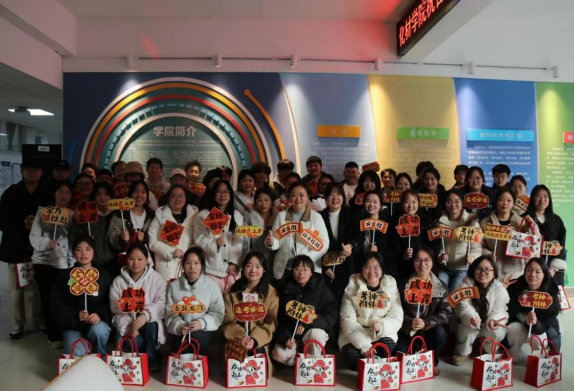 本网讯 岁末寒冬,梦想正燃。为鼓舞考研学子士气、缓解备考压力,2025年12月8日,化学与材料学院在宁静楼525会议室举办考研冲刺动员慰问大会。学院党委书记罗荣、副院长李艳莹、2022级专职辅导员陈德瑶、兼职辅导员吴婕及全体考研学子参加活动。