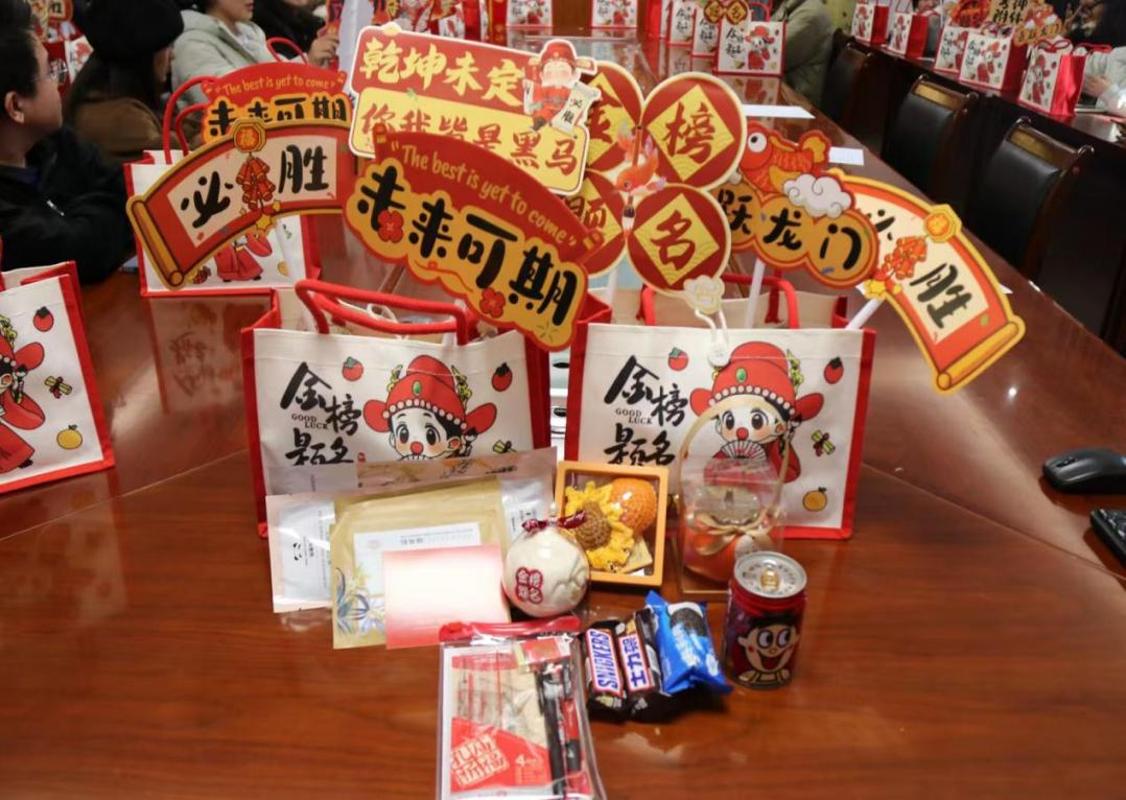会议最后,学院为考研学子发放“考研加油包”,并与同学们合影留念,现场气氛温馨热烈。