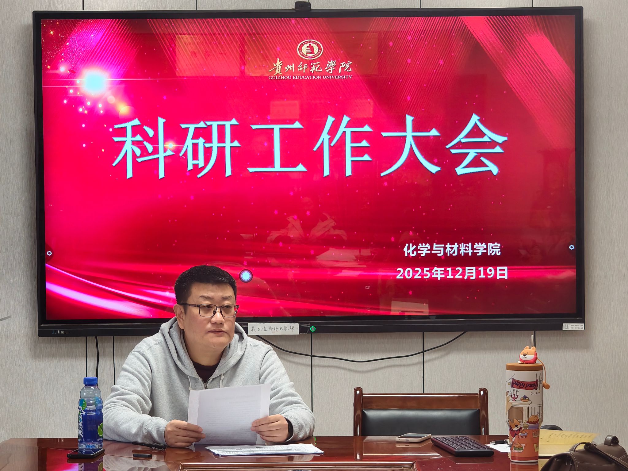 本网讯 12月19日,化学与材料学院召开2025年度科研工作大会,学院有科研任务的老师悉数参加,会议总结了2025年学院科研进展、部署2026年科研发展,聚焦科研短板剖析与发展谋划,进行了详细说明。