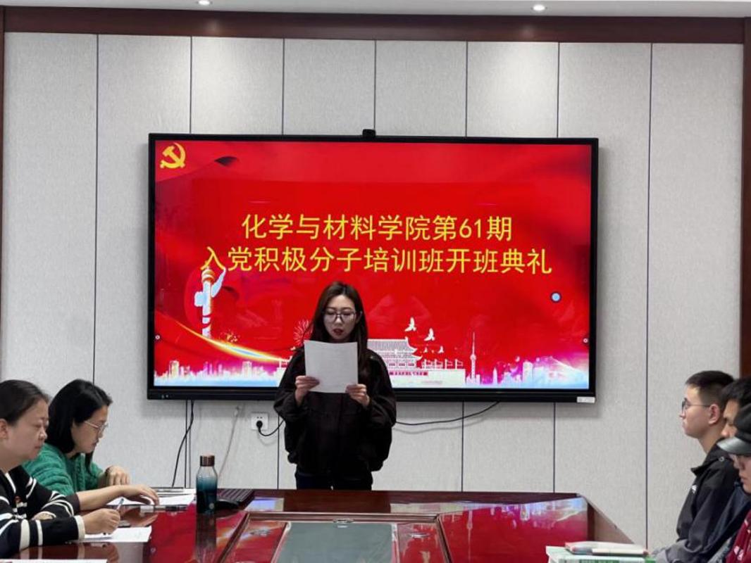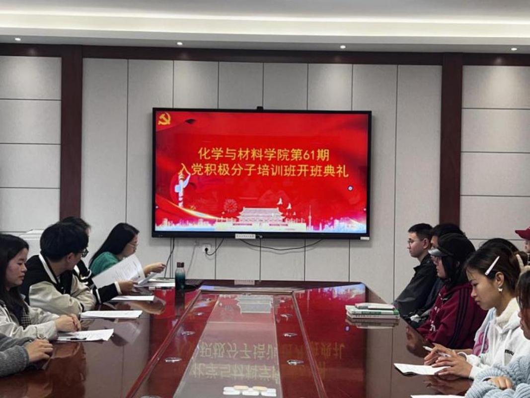 本网讯 为严把党员发展“入口关”,夯实入党积极分子思想根基,锤炼党性修养,2026年4月3日,化学与材料学院在宁静楼525会议室开展第61期入党积极分子培训班开班仪式暨“以初心三问强信念,以理论学习淬党性”主题党课,学院党委书记罗荣担任主讲,第61期入党积极分子全体学员参加。
